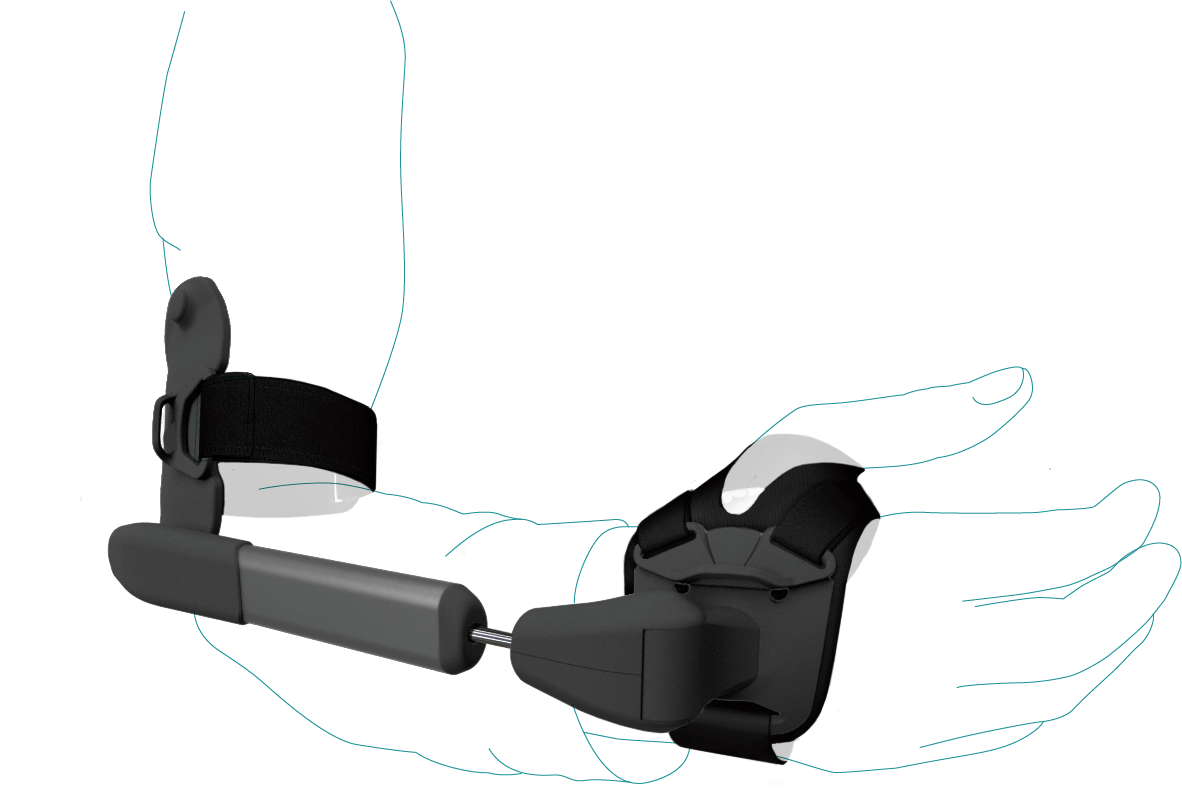 Ziel der Orthese ist es, unkontrollierte, schnelle Zitternbewegungen zu dämpfen, während willkürliche, gezielte Bewegungen erhalten bleiben.
